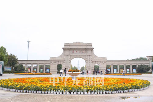 周口公園門前擺放的大型花壇