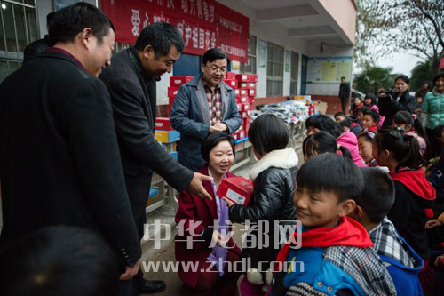 ????近日,省電商團工委、省電商協(xié)會一行人在市工信委工作人員的陪同下到商水縣舒莊鄉(xiāng)杜店小學(xué)捐贈了500套羽絨服和旅游鞋。圖為捐贈現(xiàn)場。晚報記者 王凱 攝