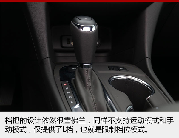有一點(diǎn)我不是很明白,雪佛蘭最新的設(shè)計(jì)理念已經(jīng)開始向運(yùn)動發(fā)展,但是它旗下的車型都不帶有運(yùn)動模式和手動換擋模式,僅僅是提供了L檔,也就是所謂的限位檔,通過檔把上方的加減按鍵可以手動使變速箱限制在相當(dāng)?shù)臋n位上,D檔模式下此按鍵無效。
