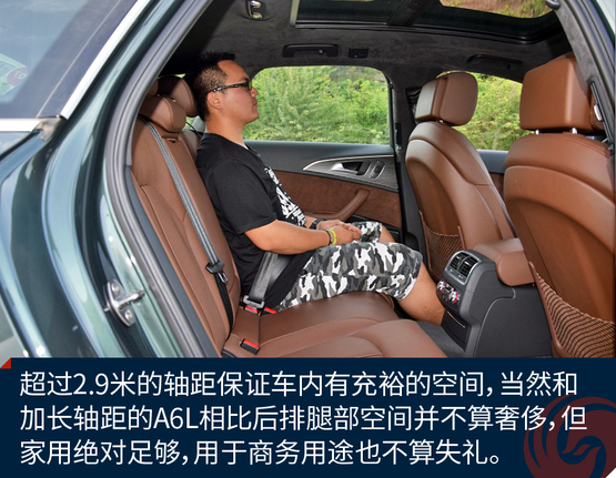 ????????作為中大型豪華車(chē)衍生的旅行轎車(chē),A6 Avant提供了充足的乘坐空間,當(dāng)然后排不會(huì)像加長(zhǎng)軸距的A6L那么奢侈,不過(guò)作為商務(wù)接待并不嫌失禮。身高180cm的人在后排足夠舒適,加上旅行車(chē)車(chē)頂輪廓高挑,后排乘客頭部空間還優(yōu)于三廂轎車(chē)。