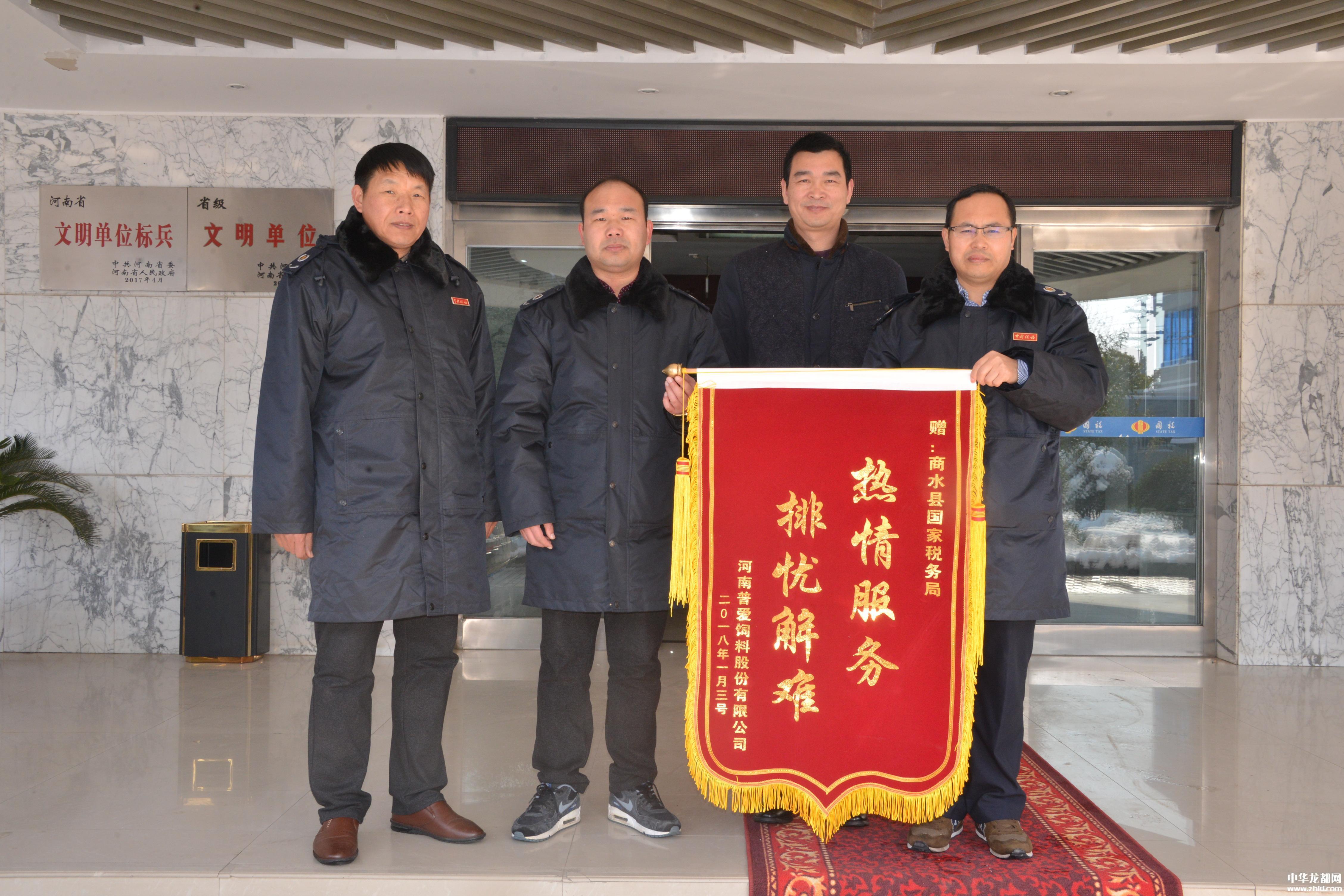 中華龍都網(wǎng)訊(周口報(bào)業(yè)全媒體記者 付永奇 通訊員 李媛媛)1月8日,河南普愛(ài)飼料股份有限公司的財(cái)務(wù)人員將一面印有“熱情服務(wù)排憂解難”的錦旗送到商水縣國(guó)稅局,感謝辦稅服務(wù)廳工作人員急納稅人之所急、想納稅人之所想,為他們提供細(xì)致、周到、高效的辦稅服務(wù)。