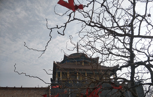 站在昆山女媧宮前向南看,一座高大宏偉的建筑物映入記者眼簾,由于它坐北朝南,我們只能看到它的背影。趙俊明告訴我們,那棟建筑物也是一座敬奉女媧娘娘的大殿,叫做媧皇圣宮寶殿。它是由一位女香客自發(fā)捐資修建的,這座氣派的大殿從無到有、從小到大整整用了14年時間,花費近千萬元。