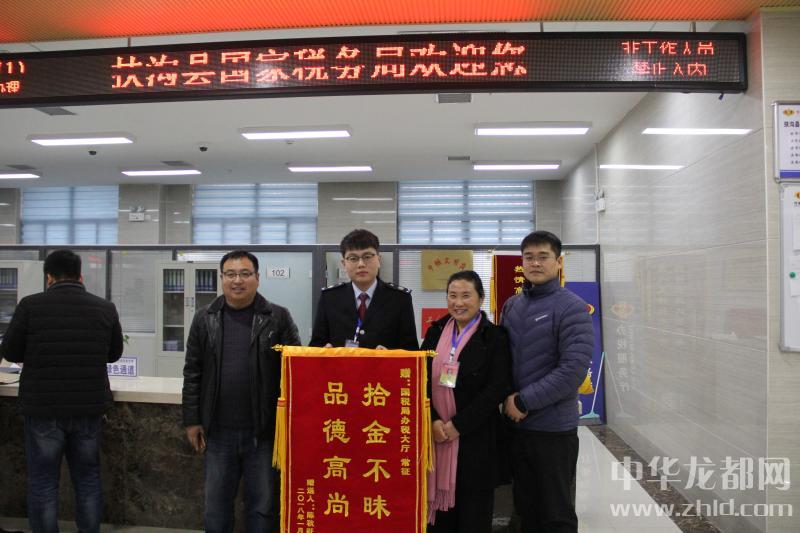 中華龍都網(wǎng)訊(周口報(bào)業(yè)全媒體記者 謝永靜)1月22日剛剛上班,陳秋旺和同事手拿“拾金不昧品德高尚”的錦旗來到扶溝縣國稅局辦稅服務(wù)廳,專程向拾金不昧的工作人員常征致謝。