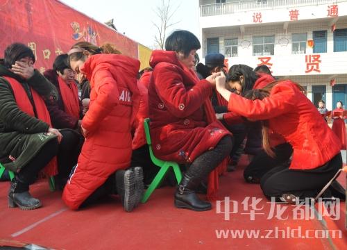 情景劇《時(shí)間都去哪兒了》表演結(jié)束之后,40多名老人在兒子、媳婦的攙扶下走上舞臺,在“從小你就告訴我,告訴我做人要懂得孝”的歌聲中,兒子、媳婦們向父母深深鞠躬,隨后重重地跪在父母面前,歸攏著父母花白的頭發(fā),凝視父母滿是皺紋的面容,不少父母、孩子激動(dòng)地流下了淚水,與兒女擁抱在一起。70多歲的位大爺表示,兒子這一跪打開了他們之間的心結(jié),讓他們更加理解對方。魏集村老人譚玉榮說:“我與媳婦關(guān)系一直非常和諧,媳婦孝順,孫子也學(xué)著媳婦孝順,非常聽話,這次活動(dòng)媳婦向我跪下述說自己的心聲,讓我們娘倆的關(guān)系更親近了。”