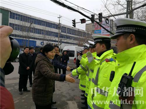 “穿這一身下雪天值勤可不行呀,今天還是有點兒冷的,手有點兒涼呀,加厚的值勤服怎么沒有穿?”在該縣新華路與文化路口,羅文閣、李全林一行和值勤交警一一握手,深切關心他們的冷暖,多次提到交警服裝問題,囑咐隨行的鄲城縣公安局政委趙紅建要多關心交警人員的保暖問題,并向交警大隊負責人送上了慰問金。