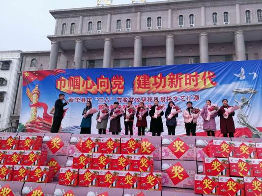 中華龍都網(wǎng)訊(周口報業(yè)全媒體記者 姬慧洋 文/圖)巾幗花開別樣紅。3月5日下午,在西華縣人民會堂前人聲鼎沸,歡歌笑語,喜氣洋洋。西華縣慶“三八”節(jié)脫貧攻堅移風易俗文藝匯演暨巾幗脫貧行動頒獎活動正在進行。
