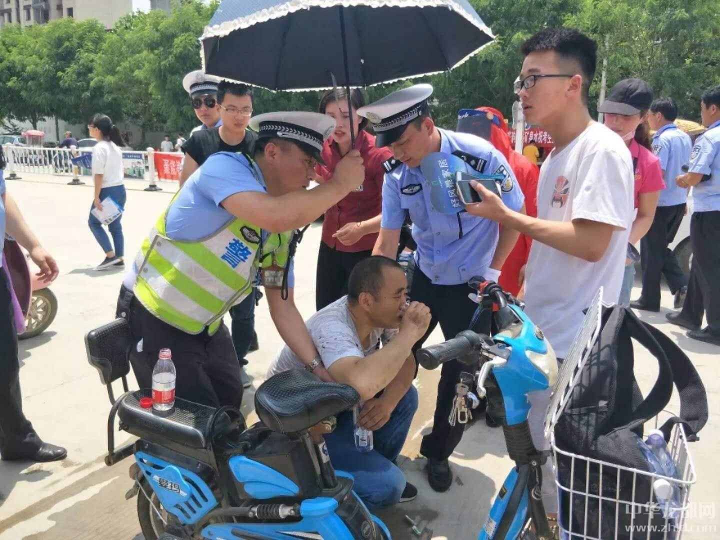 當日上午12時許,在沈丘縣一高大門口附近等待的一名考生家長癱坐在路邊,臉色蒼白,看起來身體極其不適。正在執(zhí)勤的劉濤見狀,一邊上前對車流、人流進行疏導(dǎo),避免圍觀群眾太多引發(fā)意外事故,一邊迅速聯(lián)系沈丘縣人民醫(yī)院120急救車迅速前來搶救。
