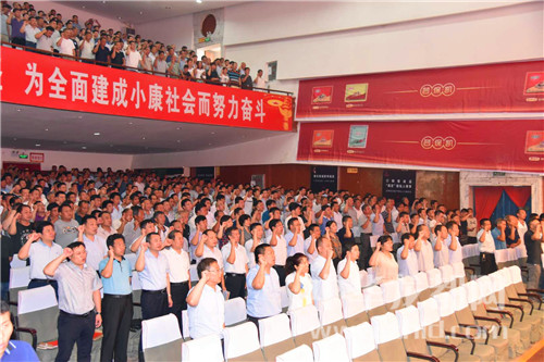會上,盧偉帶領(lǐng)與會人員進(jìn)行脫貧攻堅全面沖刺集體宣誓。