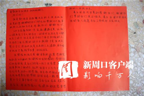 “我一定會銘記黨和政府的關(guān)懷,永遠(yuǎn)忘不了縣婦幼保健院的幫助,時(shí)刻懷著一顆感恩的心,努力學(xué)習(xí),回報(bào)社會,把這份愛心傳遞下去……”王浩激動(dòng)地說。為了表達(dá)感謝,王浩將一封感謝信遞交給了亢國良手中。