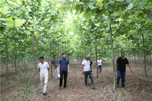 與前廟相鄰的大張村,是一個(gè)“天然大氧吧”。從大張村走出來的曹紅星在鄭州從事園林綠化多年,在朱口鎮(zhèn)黨委、鎮(zhèn)政府的支持和鼓勵(lì)下,他以1000元/畝的價(jià)格流轉(zhuǎn)了1000多畝土地,種植法桐、欒樹、國槐等綠化樹。有著豐富經(jīng)驗(yàn)的曹紅星在種植綠化樹的同時(shí),積極發(fā)展林下經(jīng)濟(jì),在綠化樹下種植紅薯、大蒜等,有效提高了土地的利用率,經(jīng)濟(jì)效益顯著提高?!捌綍r(shí),綠化林地除草、抗旱、施肥需要用工,收種紅薯、大蒜等也需要用工,用工時(shí)貧困戶優(yōu)先。只要有勞動(dòng)能力,來這里就能掙錢。”曹紅星說,林業(yè)經(jīng)濟(jì)的快速發(fā)展為鄉(xiāng)親們脫貧致富提供了保障。