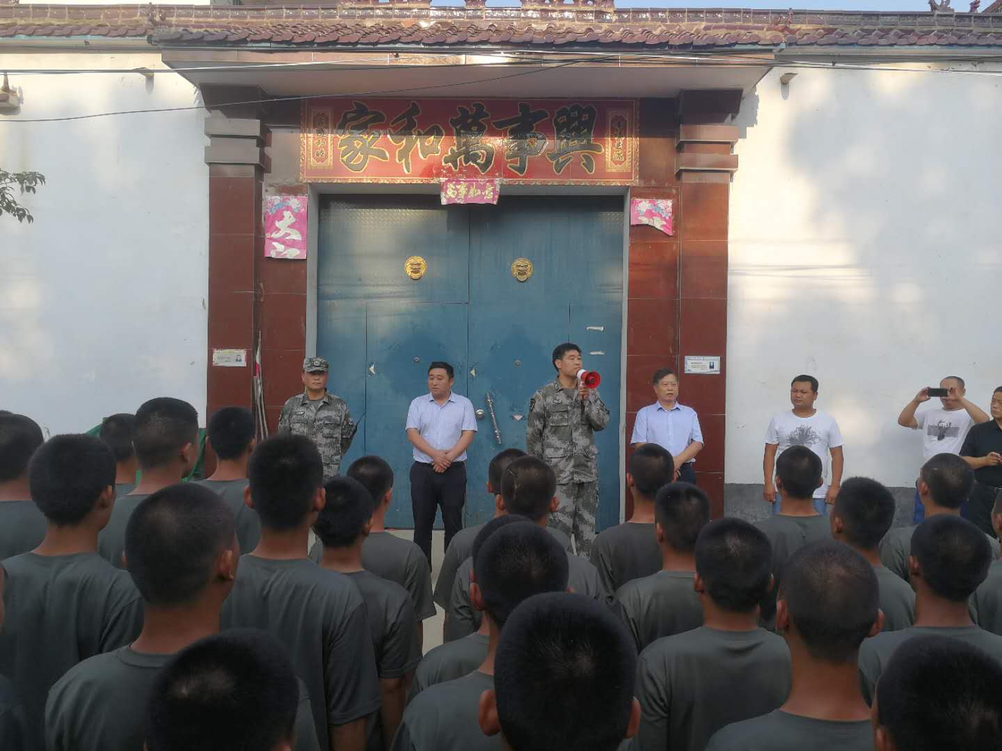 當(dāng)日,太康縣410名預(yù)定新兵走進(jìn)該縣高賢鄉(xiāng)小郭行政村,幫助村民打掃街道衛(wèi)生、鏟除路邊雜草、清理村舍淤泥,并對(duì)暴雨過后倒塌的院墻進(jìn)行修復(fù),“小戰(zhàn)士們”一個(gè)個(gè)生龍活虎、斗志昂揚(yáng),不怕臟、不怕累,爭著搶著進(jìn)行義務(wù)勞動(dòng),幫助村民收拾街道院落。