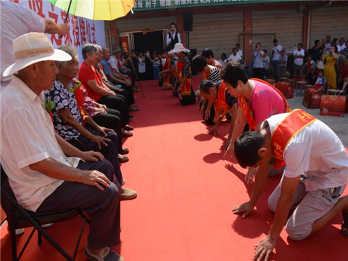 鄉(xiāng)長吳國鋒發(fā)表了熱情洋溢的致辭。他首先代表平店鄉(xiāng)黨委、政府、人大向受到表彰的先進模范和先進家庭表示熱烈的祝賀并致以崇高的敬意。并詳細闡述了開展“孝善敬老讓愛回家、孝賢之星表彰授牌暨解決獨居老年人問題、助力脫貧攻堅的重大意義,他希望受到表彰的先進代表和家庭要珍惜榮譽、再接再厲,繼續(xù)弘揚尊老、敬老、養(yǎng)老、愛老的傳統(tǒng)美德,推動全鄉(xiāng)“孝善敬老”文化不斷邁向新臺階?;顒蝇F(xiàn)場宣讀了《平店鄉(xiāng)人民政府敦促將被贍養(yǎng)人接入安全住房共同生活的通告》;與會領導為孝賢之家頒獎授牌;28個“孝子孝媳”在臺上統(tǒng)一施行叩拜大禮;活動結束后,鄉(xiāng)政府指派3名班子領導和10多名工作人員,分別乘坐6臺輛,由嗩吶隊開路,風風光光把28個老人送回了家。一路引來不少群眾駐足注目觀看,廣大群眾對此嘖嘖稱贊、拍手稱快。