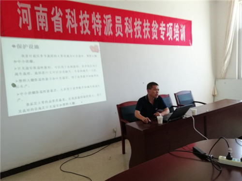 當(dāng)日上午,專家們?cè)谖魅A縣農(nóng)科所會(huì)議室舉辦“河南省科技特派員科技扶貧專項(xiàng)培訓(xùn)”,來自部分鄉(xiāng)鎮(zhèn)的扶貧產(chǎn)業(yè)基地負(fù)責(zé)人、蔬菜種植專業(yè)合作社、家庭農(nóng)場(chǎng)主、蔬菜種植貧困戶代表等30多人參加培訓(xùn)。省農(nóng)科院園藝所專家韓永平,利用多媒體教學(xué)模式,分別從蔬菜病蟲害防治、大棚秋季延后番茄栽培技術(shù)等幾個(gè)方面進(jìn)行了培訓(xùn),切實(shí)提高與會(huì)人員的科技水平和蔬菜安全種植意識(shí)。