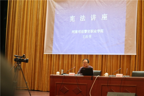 會上,省司法警官職業(yè)學(xué)院法律系主任王治荃、法學(xué)碩士孫啟河兩位教授分別從憲法的時代背景、基本內(nèi)涵、精神實質(zhì)和重要意義及依法行政的基本含義、本質(zhì)和全面推進依法行政的奮斗目標(biāo)等做了精彩輔導(dǎo)。