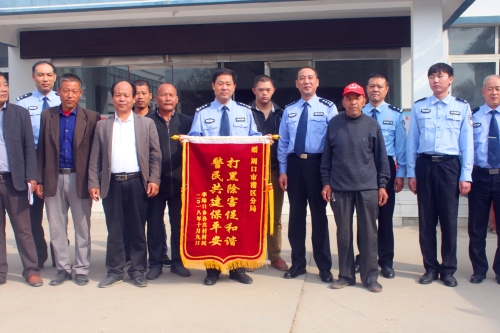 10月9日上午,李埠口鄉(xiāng)孫莊村數(shù)十名群眾代表,來(lái)到周口市公安局港區(qū)分局,將寫(xiě)有“打黑除害促和諧,警民共建保平安”的錦旗和感謝信送到何學(xué)民政委的手中,村民代表對(duì)分局鐵腕鏟除該村“村霸”維護(hù)孫莊村和諧穩(wěn)定表示由衷的感謝。