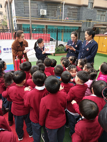11月是全國消防宣傳月。為進一步營造“全民參與 預(yù)防火災(zāi)”的濃厚消防安全氛圍,11月14日,鄲城縣消防大隊消防宣傳員走進諾貝爾幼兒園,為該校百余名師生傳授“防火經(jīng)”。