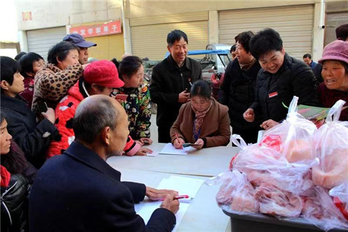 為讓廣大群眾吃上放心肉、質(zhì)優(yōu)價(jià)廉肉,李會(huì)霞請(qǐng)來(lái)縣工商局、縣非公黨工委、縣農(nóng)牧局、縣食藥監(jiān)局領(lǐng)導(dǎo)親自監(jiān)督把關(guān),確保豬肉食品安全。為了擴(kuò)大活動(dòng)的影響,她發(fā)放宣傳資料、掛宣傳條幅,還在縣FM91.8電臺(tái)滾動(dòng)播報(bào)活動(dòng)消息,在微信群傳播活動(dòng)信息,努力把好事、善事辦好,辦到群眾的心坎上。