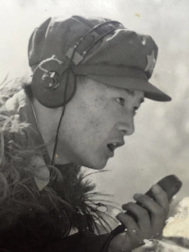 這時候,反撲的敵人越來越近了,蔣慶泉向指揮部的兩名話務戰(zhàn)士谷德泰和陸洪坤報告了這一情況??粗绯彼惚平臄橙耍Y慶泉拼盡全力,沖著步話機嘶吼:“別廢話!向我所在的碉堡頂開炮!”。在陣地暗堡中,幸存的戰(zhàn)士緊緊圍在蔣慶泉身邊,以保護他向我炮兵指揮部通報目標的位置。