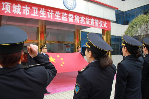 12月4日在我國第五個國家憲法日來臨之際,項城市衛(wèi)生計生監(jiān)督所舉行憲法宣誓儀式,旨在引導(dǎo)全體衛(wèi)生計生監(jiān)督人員牢固樹立憲法至上意識,增強憲法觀念,自覺維護(hù)憲法尊嚴(yán)。