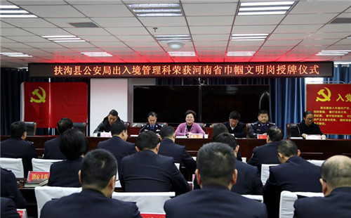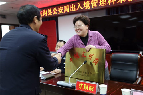 儀式上,縣婦聯(lián)主席司冰首先宣讀了河南省婦聯(lián)《關(guān)于命名河南省巾幗文明崗的決定》;縣長(zhǎng)張穎波向縣公安局出入境管理科現(xiàn)場(chǎng)授牌;縣公安局出入境管理科鄭繼華作了典型發(fā)言。