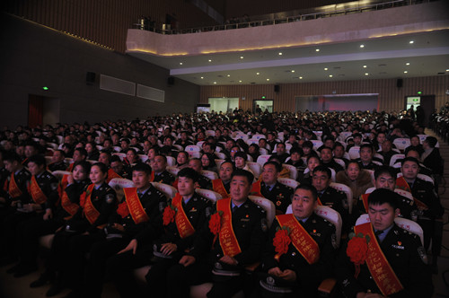 熠熠金盾耀新春,崢嶸歲月訴衷腸。1月24日晚,鹿邑縣文化中心大會堂里座無虛席,鹿邑縣公安部門在這里隆重舉行“2018忠誠記憶”職業(yè)榮譽頒獎儀式。縣領導李剛、李國際、雷申、侯自峰、陳巍、何新敏、齊梅英等和公安民警、警屬代表等共千余觀眾在現(xiàn)場共同見證。