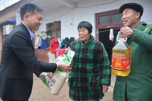 1月30日上午,商水縣平店鄉(xiāng)在曾莊村舉行在外創(chuàng)業(yè)人員曾小帥獻愛心、送溫暖捐贈儀式。