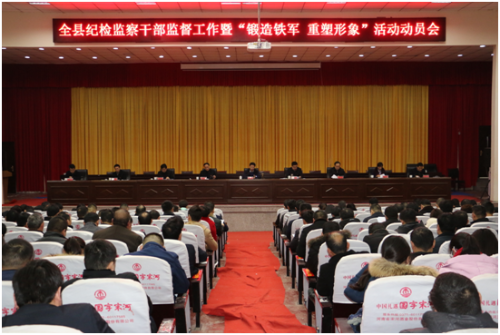 2月26日,鹿邑縣紀(jì)檢監(jiān)察干部監(jiān)督工作暨“鍛造鐵軍、重塑形象”活動(dòng)動(dòng)員會(huì)召開(kāi)??h委常委、紀(jì)委書(shū)記、縣監(jiān)委主任韓林出席會(huì)議并講話。會(huì)議傳達(dá)市紀(jì)委《關(guān)于在全市紀(jì)檢監(jiān)察系統(tǒng)深入開(kāi)展以案促改“鍛造鐵軍、重塑形象”活動(dòng)的實(shí)施意見(jiàn)》;宣讀了《縣紀(jì)委監(jiān)委機(jī)關(guān)開(kāi)展以案促改“鍛造鐵軍、重塑形象”活動(dòng)的實(shí)施方案》??h紀(jì)委副書(shū)記、縣監(jiān)委副主任李景峰主持會(huì)議。