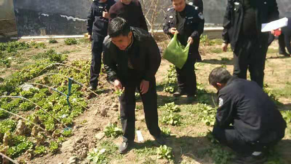 3月15日,大王莊派出所民警在簸箕劉村排查時,發(fā)現劉某家外菜地種植罌粟原植物6000株,經訊問,劉某對種植罌粟行為供認不諱;3月16日上午,民警在大王莊鄉(xiāng)王金莊村王某家菜地發(fā)現罌粟苗2980株,當民警向其講明種植罌粟的危害后,王某對種植罌粟苗治腰疼病的行為悔恨不已;當日下午,民警在大王莊鄉(xiāng)方莊村走訪中,發(fā)現在一片大蒜地里密密麻麻種植的罌粟,經清點為2001株,還有部分被黑色的障礙物遮擋住,經調查系村民方某種植。