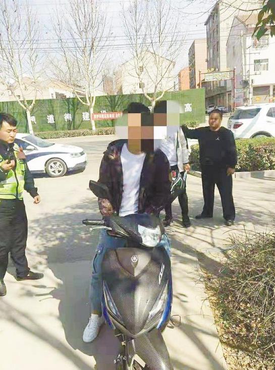 3月16日15時許,鄲城縣交警大隊治超中隊民警巡邏至公園東路時,發(fā)現(xiàn)兩名小伙子駕駛“炸街摩托”開得飛快,險象環(huán)生。執(zhí)勤隊長何濤立即指令前方巡邏民警布置錐筒和警示牌進行攔截。經過一番努力,執(zhí)勤民警終于將兩輛“炸街摩托”攔停。