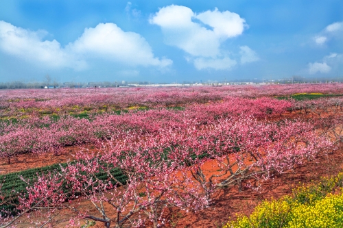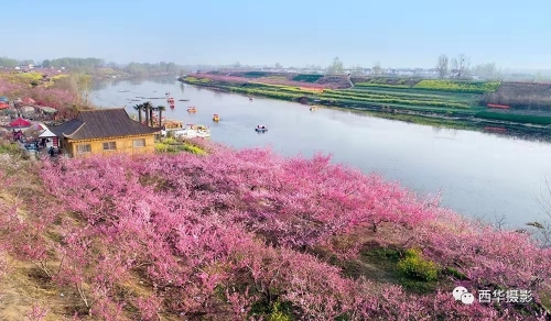 每年3月底至4月上旬,西華潁河兩岸萬(wàn)畝桃花競(jìng)相開(kāi)放,樹(shù)下金燦燦的油菜花、綠油油的麥苗相映成趣,紅、黃、綠構(gòu)成了五彩繽紛的人間仙境,置身其中,花香沁人心脾,色彩絢麗奪目,景色美不勝收,恍如身處陶淵明筆下的“世外桃源”。