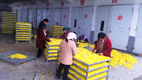 “我們提供優(yōu)質(zhì)種苗給種植戶(hù),并且提供免費(fèi)的技術(shù)指導(dǎo)以及技術(shù)培訓(xùn),群眾在種植金絲皇菊的過(guò)程中遇見(jiàn)問(wèn)題都可以隨時(shí)來(lái)咨詢(xún);在金絲皇菊成熟后我們會(huì)對(duì)老百姓所種植的菊花進(jìn)行保底收購(gòu),保證種植戶(hù)的利潤(rùn)不受影響。”據(jù)了解,目前僅張辛行政村就有菊花種植合作社3個(gè),種植金絲皇菊、雪菊、貢菊等各類(lèi)菊花近千畝,帶動(dòng)全村貧困人員由原來(lái)的303戶(hù)、998人下降至現(xiàn)在的7戶(hù)、18人,全村人靠種植菊花實(shí)現(xiàn)創(chuàng)收致富。