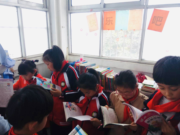 為迎接世界讀書(shū)日的到來(lái),引導(dǎo)學(xué)生“在閱讀中成長(zhǎng),在成長(zhǎng)中閱讀”,養(yǎng)成終身閱讀的好習(xí)慣,周口六一路小學(xué)在全校范圍內(nèi)創(chuàng)建班級(jí)圖書(shū)角,每個(gè)班級(jí)圖書(shū)角的藏書(shū)超過(guò)百冊(cè)。圖為孩子們?cè)趫D書(shū)角認(rèn)真閱讀。