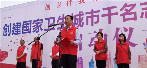 儀式現(xiàn)場(chǎng),閆立超宣布創(chuàng)建國家衛(wèi)生城市志愿服務(wù)活動(dòng)正式啟動(dòng)。