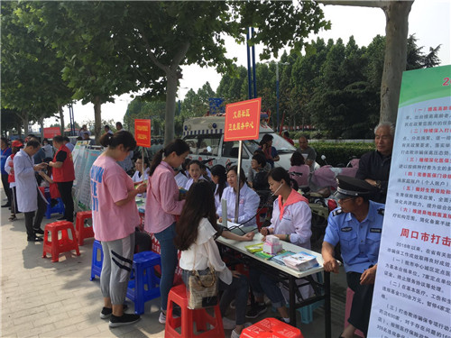 儀式現(xiàn)場(chǎng),示范區(qū)組織的大型義診活動(dòng)同時(shí)舉行,現(xiàn)場(chǎng)工作人員發(fā)放了《創(chuàng)建國家衛(wèi)生城市致廣大市民的一封信》和《創(chuàng)衛(wèi)行業(yè)衛(wèi)生標(biāo)準(zhǔn)》。志愿者代表黃玉麟發(fā)言,全體志愿者舉起右手莊嚴(yán)宣誓。