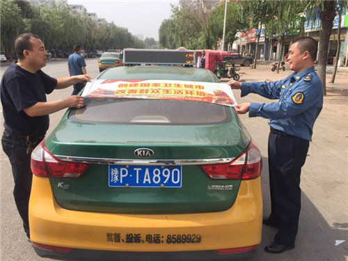 由區(qū)五城聯(lián)創(chuàng)指揮部牽頭,組織區(qū)城管局、區(qū)交通運(yùn)輸局等職能部門,利用城管執(zhí)法車輛、環(huán)衛(wèi)保潔車輛、交通執(zhí)法車等,統(tǒng)一張貼宣傳標(biāo)語進(jìn)行宣傳。日出動各類宣傳車輛109輛。區(qū)五城聯(lián)創(chuàng)指揮部辦公室會同區(qū)交通運(yùn)輸局在中心城區(qū)出租車上統(tǒng)一張貼創(chuàng)衛(wèi)宣傳標(biāo)語和禁煙標(biāo)志,累計張貼出租車600余輛。多種載體宣傳。利用車體標(biāo)語、車載音響、大喇叭、出租車頂燈等載體,大密度宣傳創(chuàng)衛(wèi)標(biāo)語口號,播放統(tǒng)一灌制的創(chuàng)衛(wèi)宣傳音頻。
