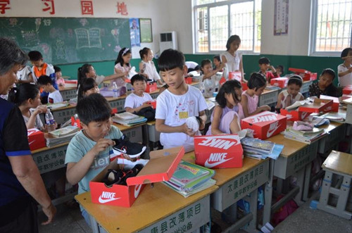 說干就干,回到公司,他便安排專人負責,為母校的260多名師生每人購買了一雙出廠價200余元,總價值5萬余元而市場價則需10多萬元的國際知名品牌—耐克牌運動鞋,為學校落實陽光體育運動,強健孩子的體魄打下了良好的物質基礎,受到當?shù)馗扇旱囊恢潞迷u。