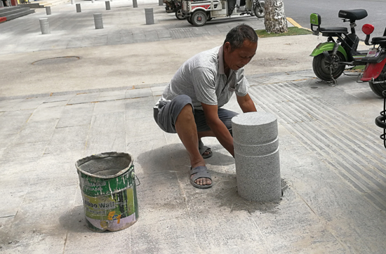石樁“上崗” 人行道更通暢