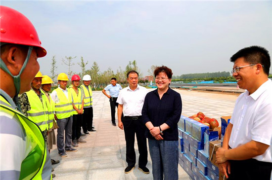 炎炎夏日,酷熱難當(dāng)。張穎波一行為高鐵施工人員送來(lái)了總價(jià)值約2萬(wàn)元藿香正氣口服液、太極水等藥品和西瓜,并送來(lái)了扶溝人民對(duì)施工人員戰(zhàn)酷暑、保進(jìn)度的親切慰問(wèn)。該項(xiàng)目負(fù)責(zé)人感動(dòng)地說(shuō),“張縣長(zhǎng)對(duì)高鐵項(xiàng)目時(shí)刻牽掛于心。過(guò)年時(shí)陪著工人吃餃子,三伏天送‘清涼’,大家心里很溫暖?!痹撠?fù)責(zé)人表示,要把溫暖傳導(dǎo)給一線施工人員,化作工作的動(dòng)力,加班加點(diǎn)干,保質(zhì)保量干,確保扶溝人民高鐵夢(mèng)如期夢(mèng)圓。