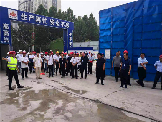 觀摩團第二站來到鄲城縣施工現(xiàn)場、地產(chǎn)項目人文景觀打造等處觀摩學習。觀摩團一行逐一參觀了售樓中心及周邊人文景觀打造項目和現(xiàn)場安全文明施工揚塵治理先進做法,每到一處都讓觀摩團震撼。