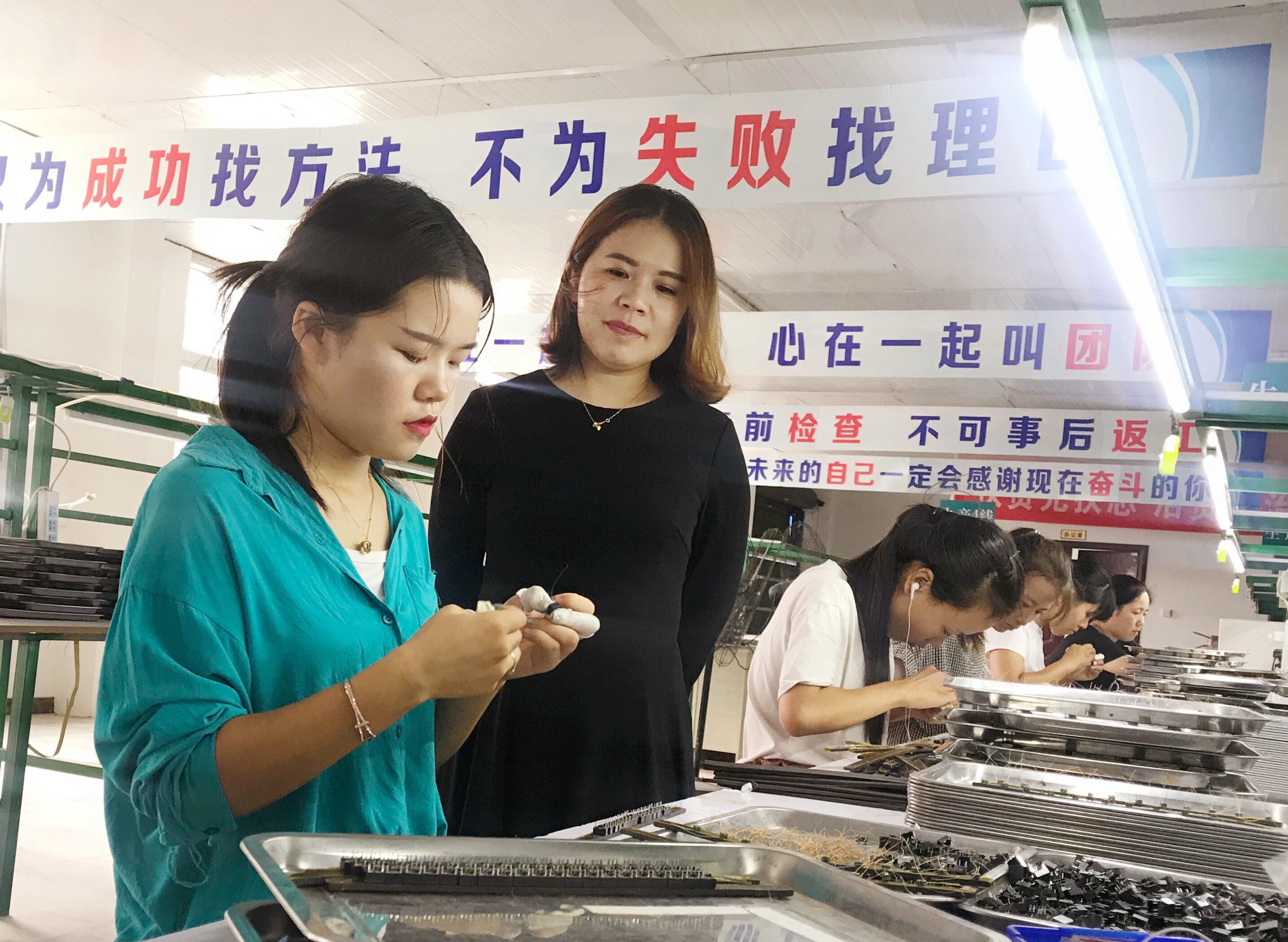 河南雙晨電子科技有限公司去年落戶(hù)西華縣大王莊鄉(xiāng)劉老家村后,生產(chǎn)線(xiàn)安裝繞線(xiàn)機(jī)、點(diǎn)焊機(jī)、包裝機(jī)等近50臺(tái),產(chǎn)品廣泛用于液晶顯示屏、計(jì)算機(jī)、數(shù)碼相機(jī)、醫(yī)療設(shè)備、汽車(chē)等,目前已安置群眾就業(yè)50余人,其中貧困戶(hù)近20人,人月均收入3000多元,讓村民在家門(mén)口實(shí)現(xiàn)就業(yè)增收。圖為該公司總經(jīng)理在生產(chǎn)車(chē)間了解工人收入和家庭生活情況。