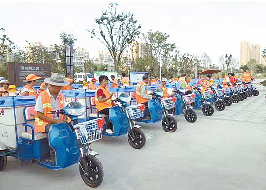本報(bào)訊 9月6日下午,1000輛電動(dòng)環(huán)衛(wèi)車在周口鐵路主題公園亮相。這些純電動(dòng)的環(huán)衛(wèi)車將用于我市中心城區(qū)背街小巷的清掃工作。