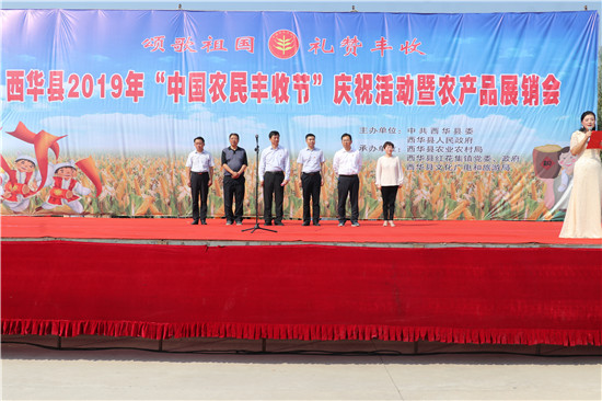 紅彤彤的辣椒、金燦燦的玉米、沉甸甸的紅薯……又到一年瓜果飄香時。9月24日上午,西華縣2019年“中國農(nóng)民豐收節(jié)”慶?;顒郁咿r(nóng)產(chǎn)品展銷會在該縣紅花鎮(zhèn)龍池頭村文化廣場正式拉開序幕??h領導林鴻嘉、程維崢、楊鳳臣、毛茹出席活動。