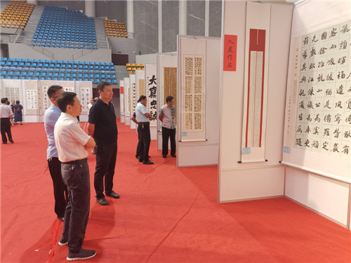 為紀(jì)念抗日民族英雄吉鴻昌將軍就義85周年,大力弘揚(yáng)愛(ài)國(guó)主義精神和中華民族優(yōu)秀傳統(tǒng)文化,9月28日上午,首屆“吉鴻昌精神杯”全國(guó)書(shū)法大賽暨名家作品邀請(qǐng)展在扶溝縣體育館隆重舉行。原廣州軍區(qū)政治部副主任陳大民少將、解放軍報(bào)社原副社長(zhǎng)田仁德少將、解放軍報(bào)社原副總編孫臨平少將、解放軍裝備學(xué)院原副政委孫南京少將、解放軍總后勤部某研究所原所長(zhǎng)楊廷欣少將、吉鴻昌將軍親屬鄭吉安大校,市委常委、周口軍分區(qū)政委孫先振,市政協(xié)副主席張文平,扶溝縣四個(gè)班子領(lǐng)導(dǎo)及副處級(jí)干部等出席開(kāi)幕式??h委副書(shū)記、政法委書(shū)記詹凱主持儀式。