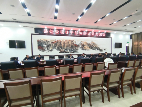 10月29日,扶溝縣召開處級領(lǐng)導(dǎo)干部調(diào)研成果交流會和縣委理論學(xué)習(xí)中心組對照黨章黨規(guī)找差距專題會??h處級領(lǐng)導(dǎo)干部就調(diào)研發(fā)現(xiàn)的問題、提出的思路和解決的辦法進行總結(jié)交流,對照黨章黨規(guī)查找自身存在的突出問題,進行檢視整改,將主題教育轉(zhuǎn)化為解決問題的具體行動。縣委副書記、縣長張穎波主持會議。