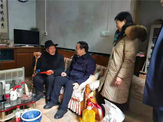 在鹿邑縣中心敬老院娛樂室內(nèi),劉國連、胡軍與老人一一握手,向老人們詢問吃的好不好、住的暖不暖、年貨全不全。同時叮囑養(yǎng)老院負(fù)責(zé)人要照顧好老人們,讓他們過上一個歡樂祥和的春節(jié)。
