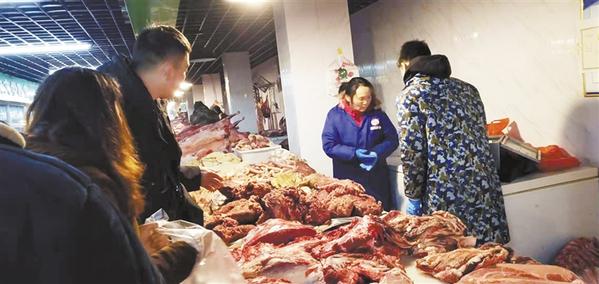 市民在選購(gòu)牛肉和豬肉。 見(jiàn)習(xí)記者 苑美麗 攝