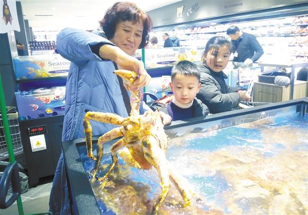 1月20日,一位市民在超市內(nèi)選購(gòu)海產(chǎn)品。 記者 孫安平 攝