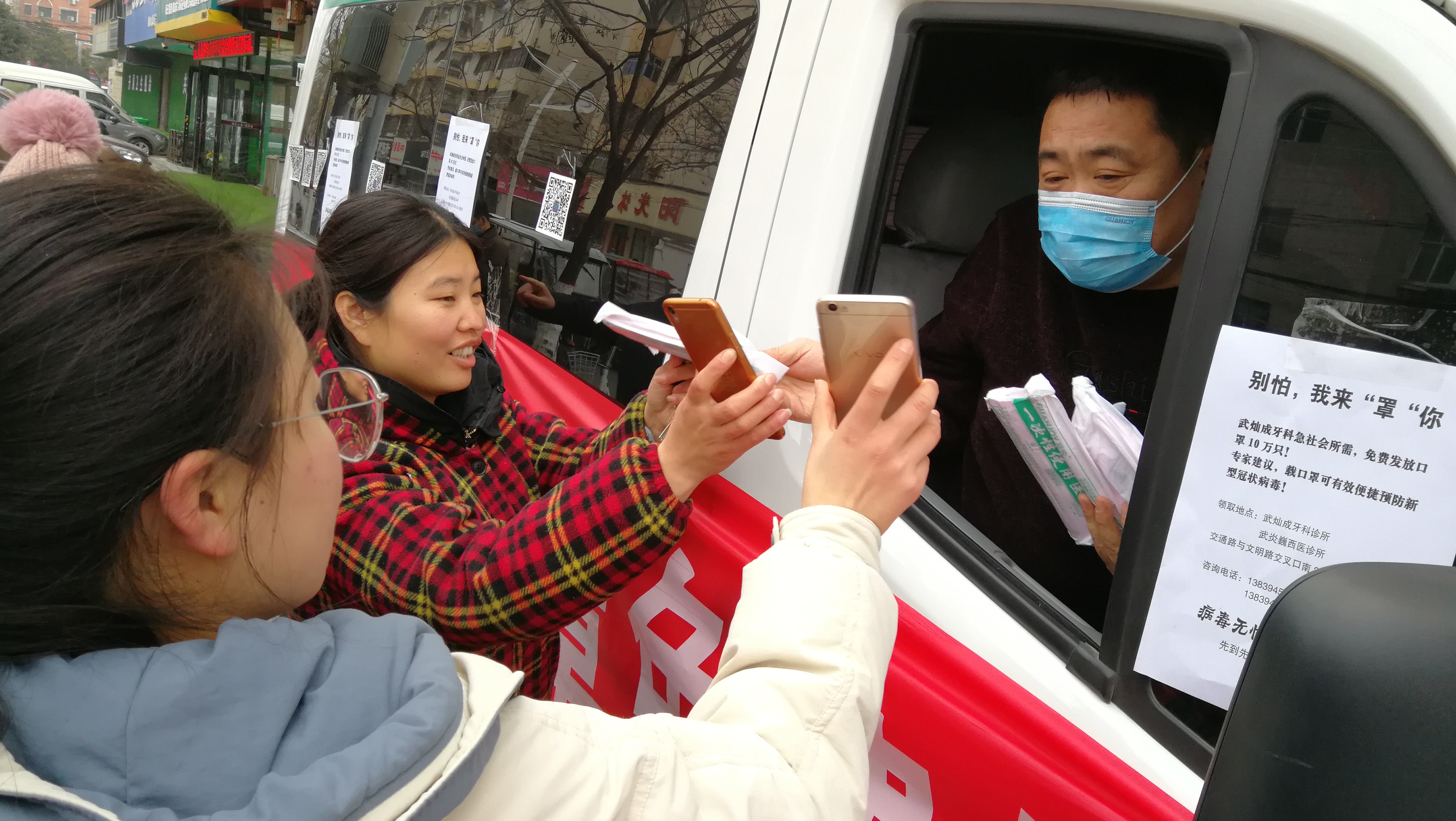 為應(yīng)對新型冠狀病毒肺炎和流感季,1月23日,文明路中段一家診所特采購了十萬只一次性使用醫(yī)用口罩,免費(fèi)發(fā)放給過路市民,受到人們的交口稱贊。記者 王映 攝