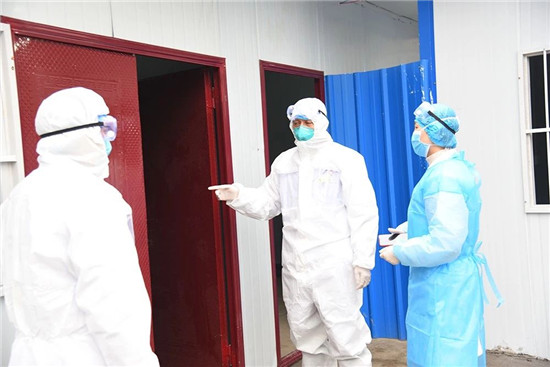 醫(yī)院在附近賓館租用25個單間,用于一線醫(yī)務人員臨時休息,醫(yī)務人員換班時由專車接送,吃飯由專人派送,確保任何一個環(huán)節(jié)都不會發(fā)生意外感染。 于健、高飛深入隔離區(qū)慰問值班醫(yī)務人員,對他們舍小家、顧大家,為防疫工作大局、為更多群眾的生命與健康付出的辛苦努力,表示衷心的感謝。