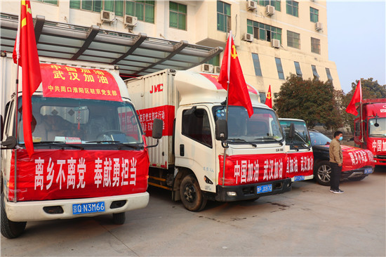 2月4日,隨著一輛輛裝滿物資的汽車緩緩駛?cè)胫芸?,周口市淮陽區(qū)駐外流動(dòng)黨員黨支部的一場捐款捐物活動(dòng)如期進(jìn)行。